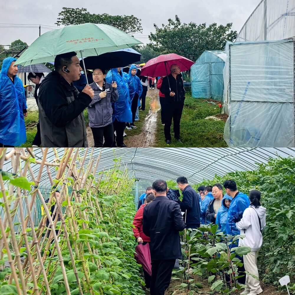 随后,在绵绵细雨中,陈博士带领学员们到武大绿洲绿色防控生态小镇实地学习“绿色防控5+2体系的每个应用场景”。主要介绍了农业面源污水“三管分立”技术和番茄、西瓜等全程绿色防控技术。特别是贝莱斯芽孢杆菌CY30在新疆北疆瓜类上面既可以预防白粉病又可以增产的效果,引起了大家的兴趣,也纷纷表示要在其管辖区域内进行现场试验,为在新疆推广绿色防控技术提供好的技术支撑。